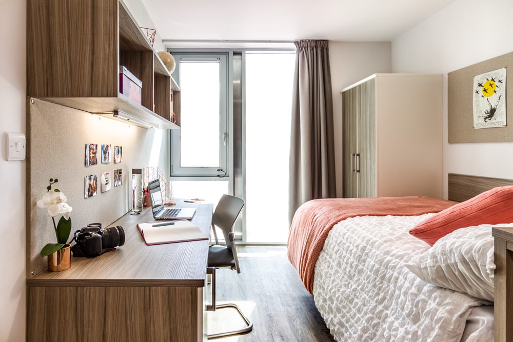 Cada estudiante disfruta de su propio dormitorio privado con baño en suite. Además, hasta 8 estudiantes pueden compartir un mismo apartamento, ofreciendo una convivencia cómoda y sociable y se intenta mezclar las nacionalidades para que el inglés sea el idioma predominante en todo momento.